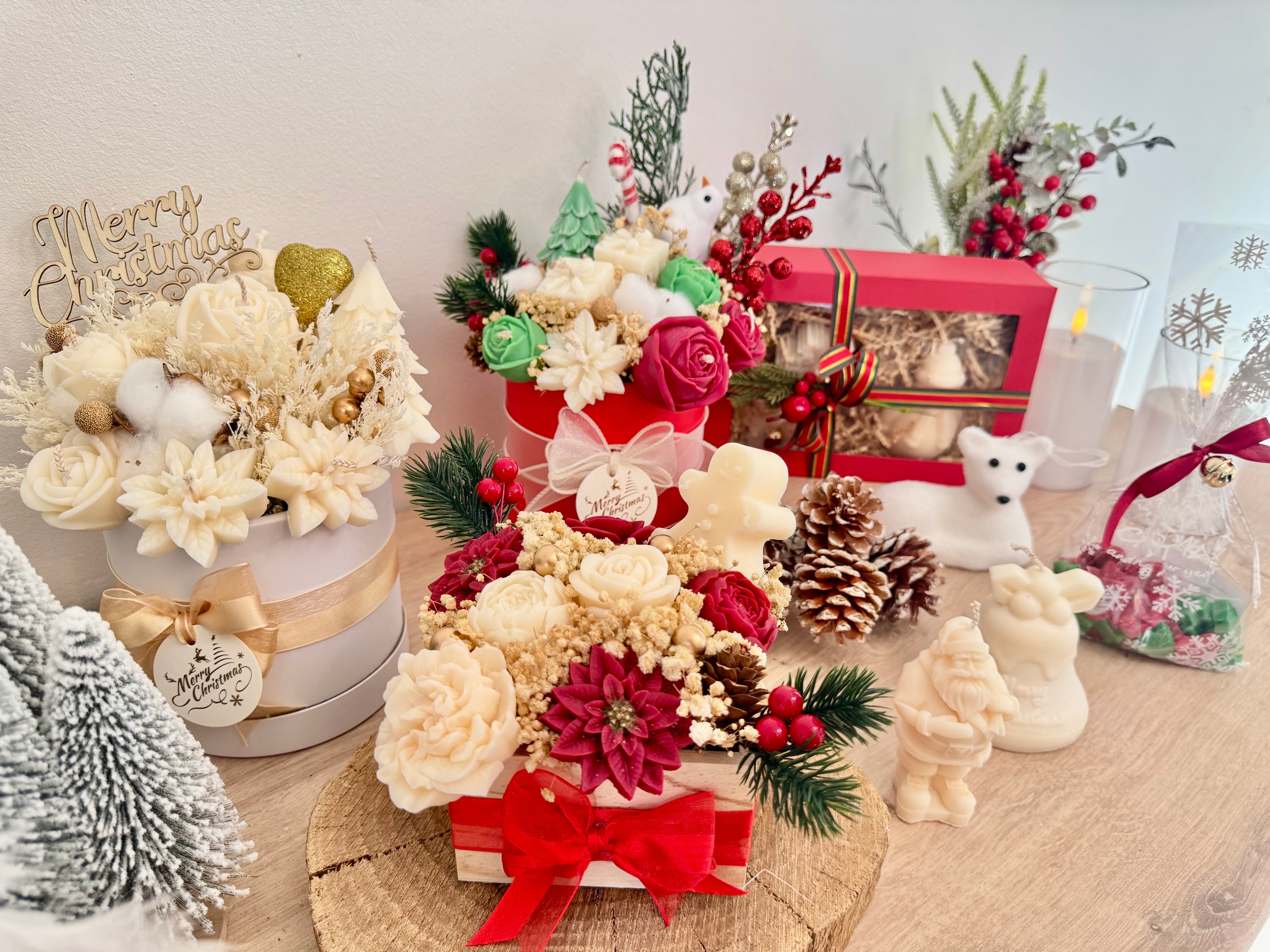 🎁 Bouquet Bougies de Noël – Collection Blanc & Or